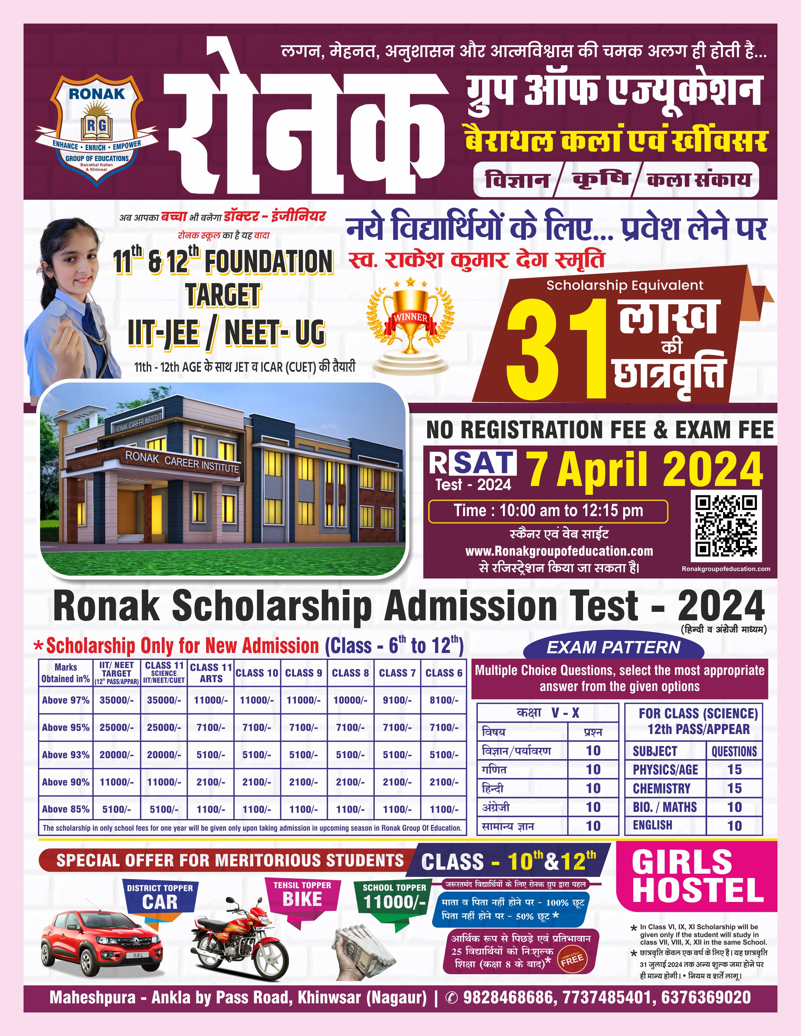Ronak group of education have mission to make every student disciplined, successful and make aware about Indian culture. Ronak group is giving best results since 2002 and working on faith of around 2100 students parents.